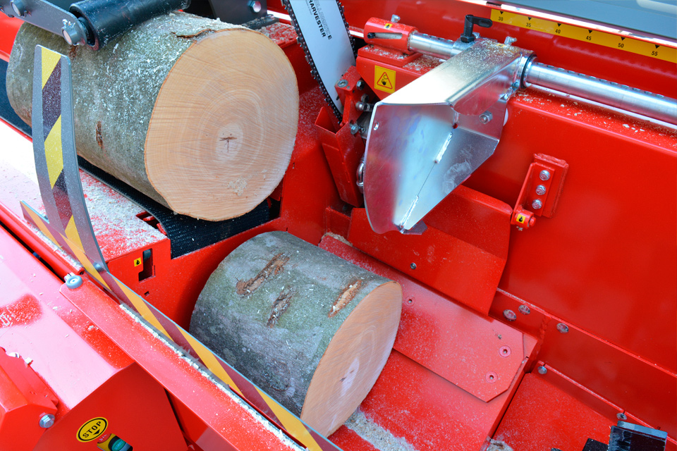 - Masszív kivitelű rönkhossz-beállítás a rönkfeladó szalag automatikus leállításával